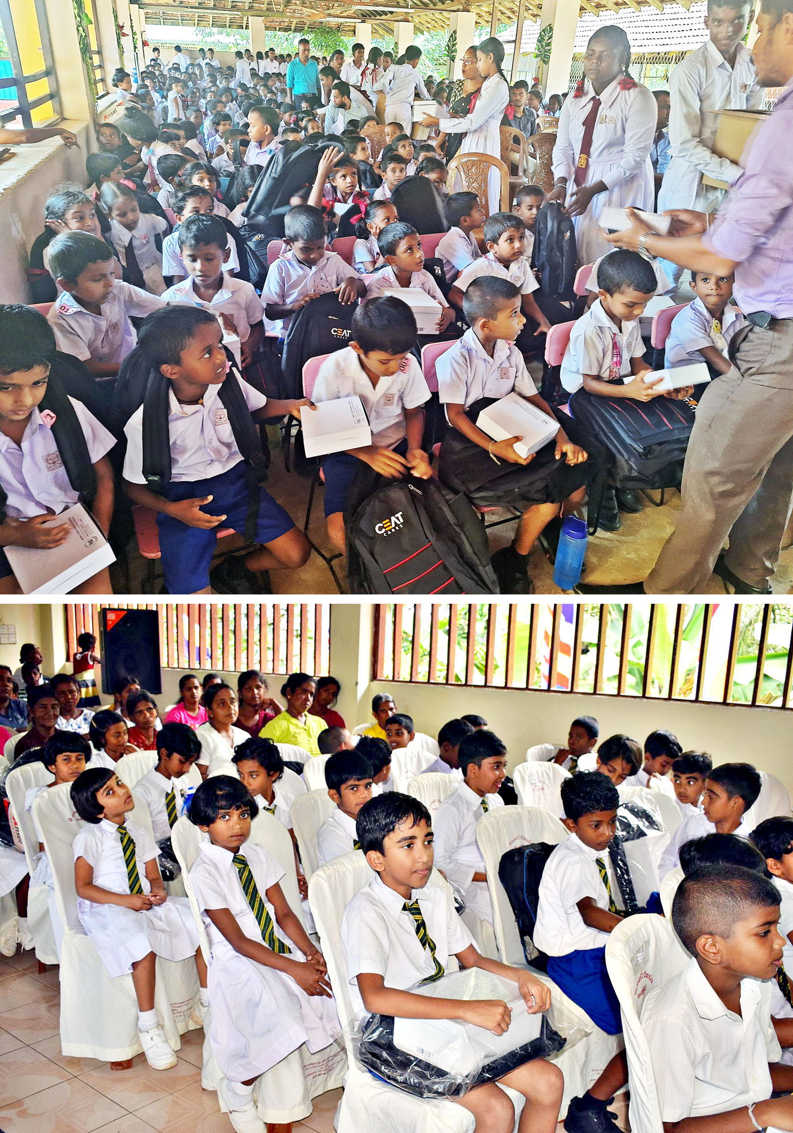 Presents school bags, shoes and stationery to 120 students of Vidyartha Maha Vidyalaya, Nakkala